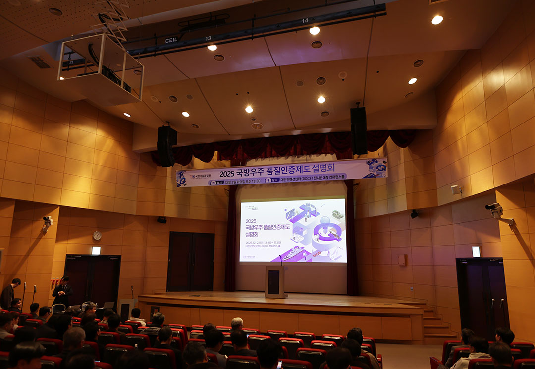 실시간 뉴스 더보기 2025-12-02 국방우주 품질인증제도 첫발... 우주 방산 신뢰의 새 장 연다 2025-11-26 국방품질인을 위한 상생·협력·소통의 장 열려 2025-11-24 2025년 ‘자랑스러운 기품원人’에 김상엽 책임연구원 선정 2025-11-24 ‘K-방산의 미래, AI와 융합‘, 세계 석학 경남 집결 2025-11-18 국방기술품질원, UAE 방산품질기관과 정부품질보증 협정 체결 2025-10-23 국방기술품질원, K2전차 주요 부품에 DQ마크 인증 수여