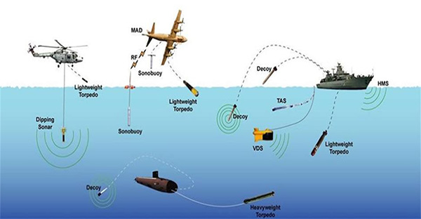 그림 3. 적 수상함/항공기를 이용한 잠수함 탐지