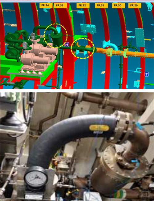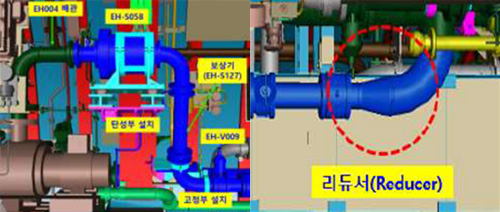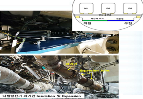 첫째, 고압냉각해수 배관 발생 진동 소음 저감을 위한 구조를 개선하였다.