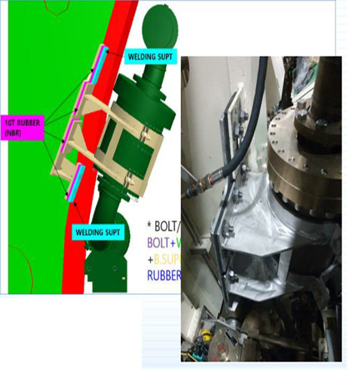 첫째, 주냉각해수펌프 토출부 구조음 저감을 위해 배관 계통의 지지 구조를 개선하였다.