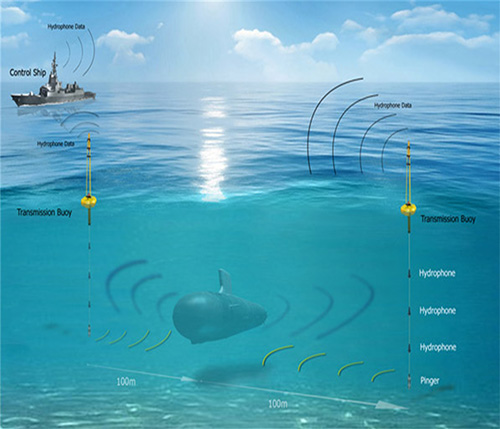 그림 1. 잠수함 수중방사소음 탐지 모식도