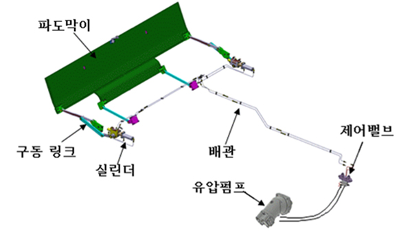 훈련 및 교육 등 장비 운용 기간이 장기화됨에 따라 파도막이 전개에 구동력을 제공하는 유압펌프의 구성품들이 노후화 되어 펌프의 효율 저하가 발생할 가능성이 있다.