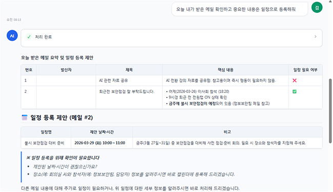 AI가 사용자 메일 정보를 확인 후 일정 등록해서 관리해줍니다.