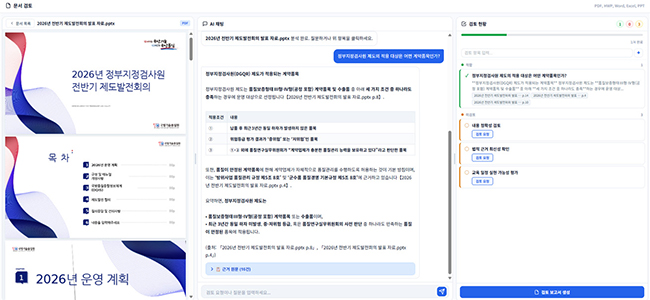 AI가 검토해야 할 항목을 자동으로 식별하고, 각 항목에 대한 분석 결과를 제공합니다.