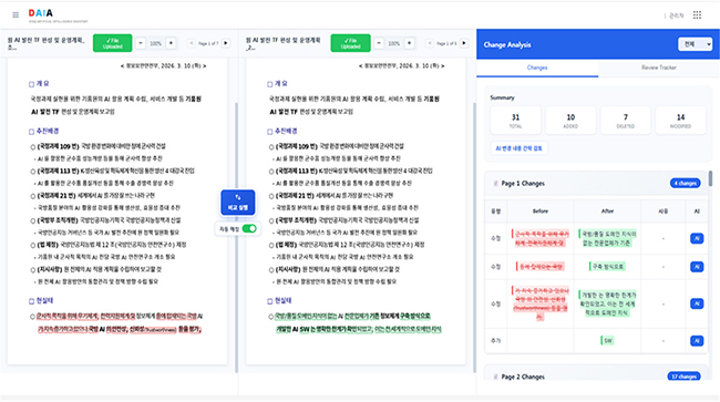 두 개의 문서를 업로드하여 변경사항을 자동으로 분석합니다.
