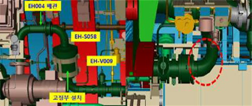 첫째, 고압냉각해수 배관 발생 진동 소음 저감을 위한 구조를 개선하였다.