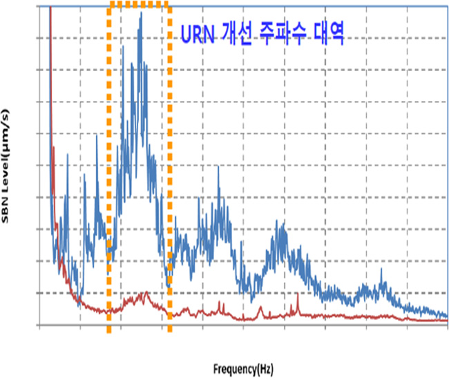 첫째, 주냉각해수펌프 토출부 구조음 저감을 위해 배관 계통의 지지 구조를 개선하였다.