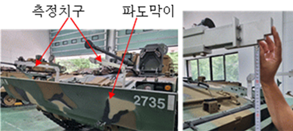 앞서 언급한 바와 같이 파도막이 조립체는 보병전투차량의 수상 운행간에 조종수의 시야 및 탑승자의 생존성을 확보하는 등의 중요한 기능을 담당한다. 전투상황에서 파도막이 조립체가 전개되지 않으면 도하지점에서 파도막이를 완전히 전개시키기 위해 운용자가 차체 외부로 나가게 되고 이 인원은 적의 화력으로부터 보호받을 수 없게 되는 상황을 초래하게 된다. 또한 파도막이를 상부지지대에 완전히 결합하지 않은 상태에서 수상운행을 하면 파도막이에 가해지는 물의 저항(560kgf)에 의해 파도막이 조립체에 기계적 손상을 유발하며 이는 곧 차체 침수 위험으로 이어진다. 아래 그림 1은 파도막이 조립체 부족 전개 상태(좌)와 이를 해소하기 위해 인위적으로 추가 인상(우)을 하는 사진이다.