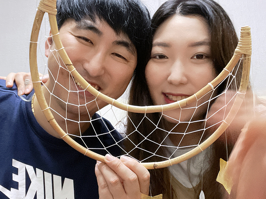 특히 드림캐처가 바람에 흔들릴 때 나는 청량한 소리가 이번 주제가 왜 ‘여름밤을 이겨낼 드림캐처 체험’인지 단번에 이해 갈 정도로 예뻤다. 그 청량한 소리는 햇살이를 기다리는 우리 부부의 마음을 설레게 만들기 충분했다. 드림캐처는 나쁜 꿈을 걸러주고 좋은 꿈만 꾸게 해주는 소품이라고 한다. 무더운 여름을 지나 시원한 바람이 반겨줄 때 태어날 우리 부부의 햇살이가 이 드림캐처의 기원처럼 늘 좋은 꿈만 꾸는 삶을 지냈으면 좋겠다♥