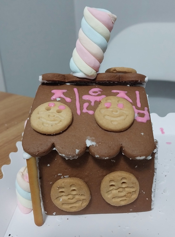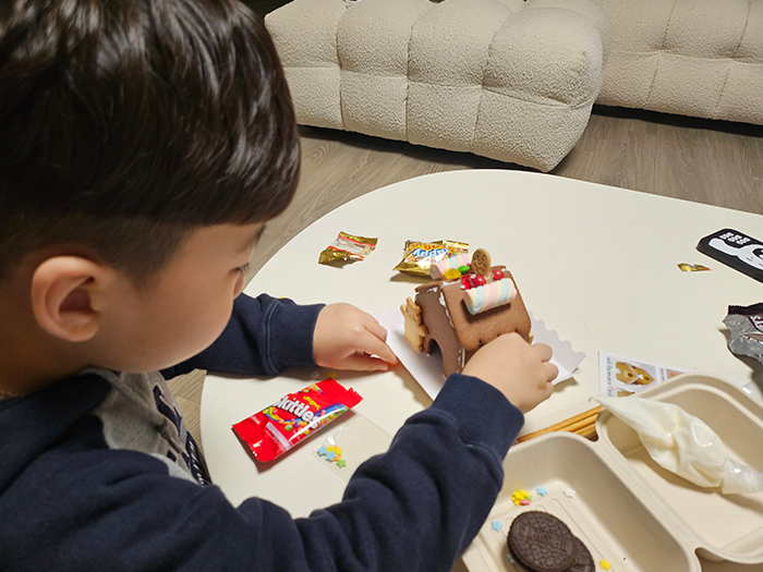 화려하게 장식된 과자집을 완성하자 아이의 얼굴에는 자부심이 가득했고, 저 역시 그런 아이를 보며 큰 기쁨을 느꼈습니다. 이번 체험은 단순한 과자집 만들기를 넘어 인내와 협력, 창의력을 배울 수 있는 소중한 시간이었습니다.