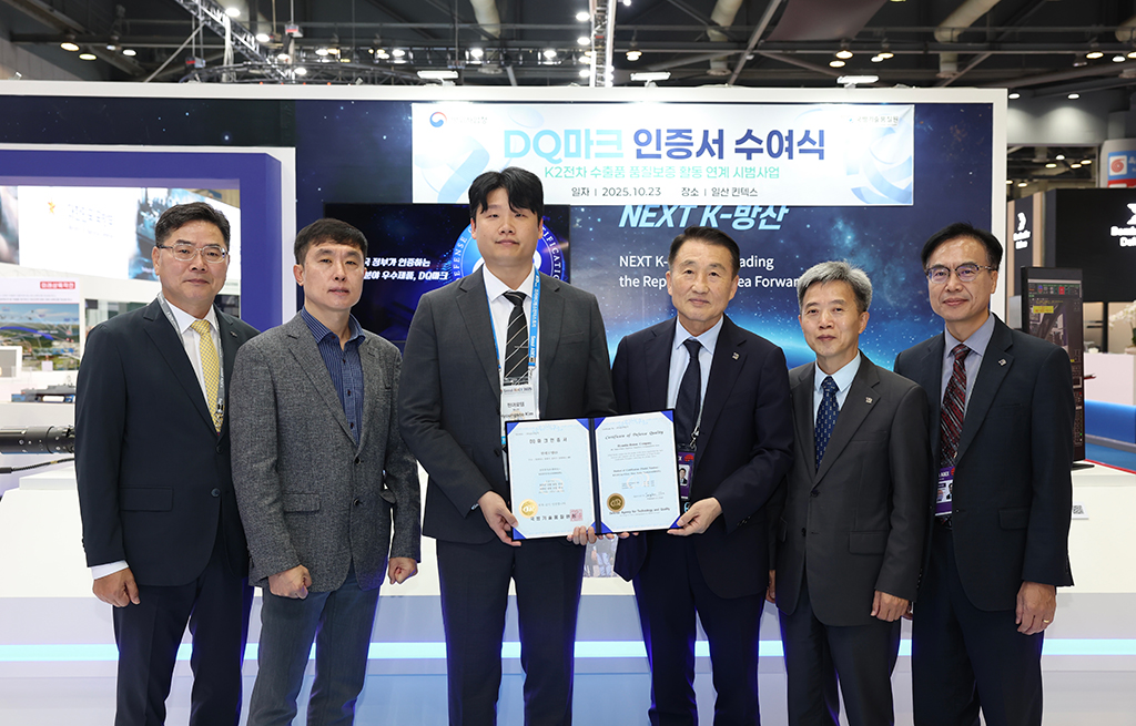 행사기간 중인 23일, 국방기술품질원은 통합홍보관에서 ‘DQ마크 인증 수여식’을 개최했다. K2 전차 주요 부품을 생산하는 30개 협력업체의 321개 품목이 DQ마크 공식 인증을 받았다. 이는 K2 전차 수출과 직결된 핵심 구성품으로, 유럽·중동·동남아 등 신규 시장 진출에 한층 속도를 더할 전망이다.