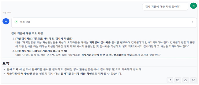 문서 검토와 규정 검색 기능이 특히 유용할 것으로 생각합니다. 품질 보고서나 문서를 검토할 때 필수 항목이 빠졌는지 확인하거나 규정을 확인하는 과정이 필요한데, AI가 이를 지원하면 업무시간을 줄일 수 있습니다. 다만 초기 출시이기 때문에 부족한 부분들이 많습니다. 이에 계속해서 사용자의 의견을 귀담아들으면서 실질적으로 업무에 도움을 줄 수 있도록 지속해서 개선해 나가도록 하겠습니다.